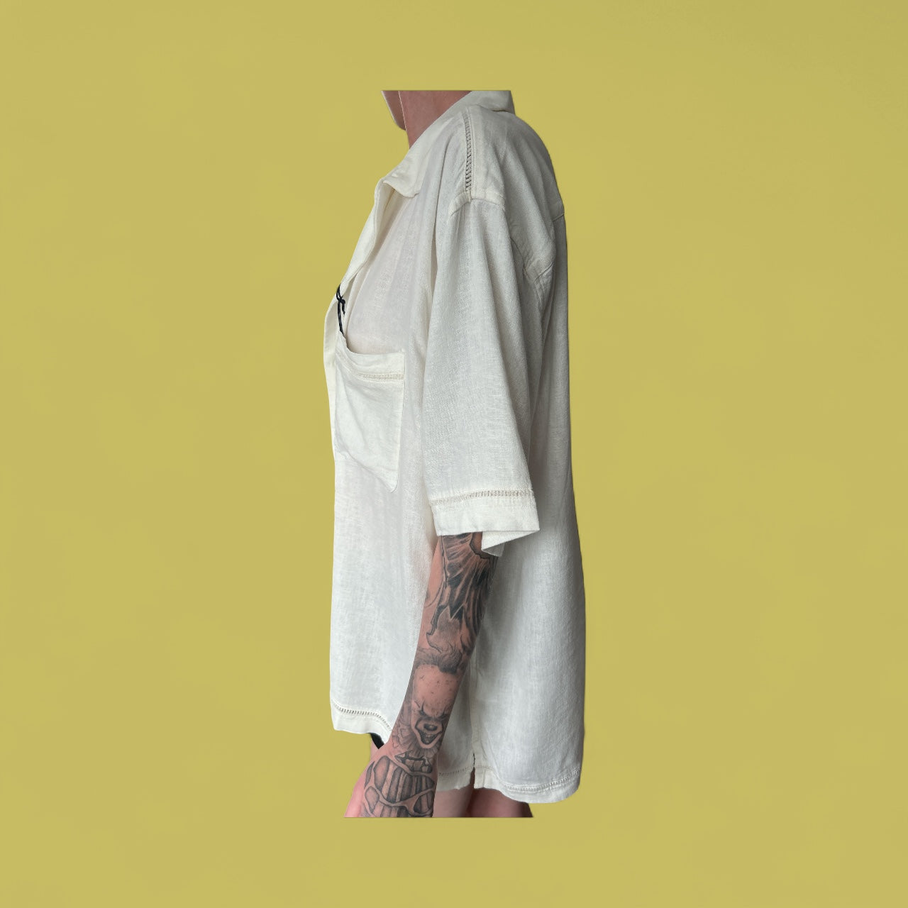 ABERCROMBIE AND FITCHBURG NEW AND TAGGED LINEN SHIRT/BLOUSE WITH DETAIL UK SIZE LARGE.