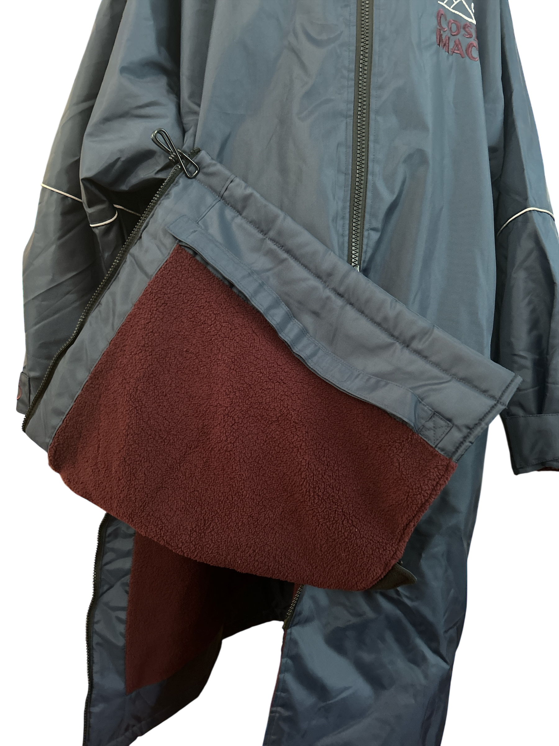 Duel side straps open fully for ventilation, Adjustable Velcro leg straps keeps the robe secure during high winds or energetic activities.