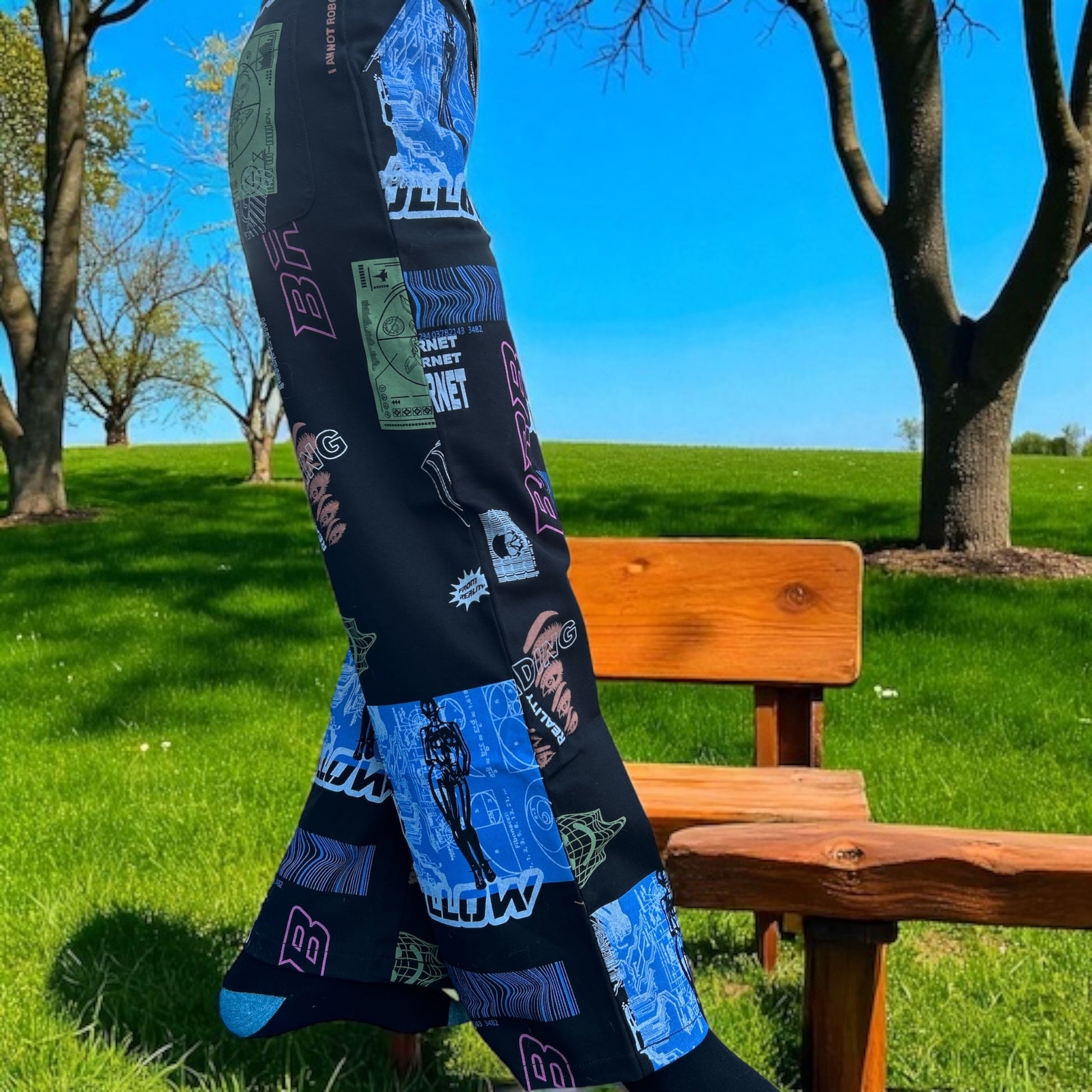 NEW WITH TAGS. Retrograde Stunning Blue & Black UK Small Trousers. Current mood, Life without Internet!