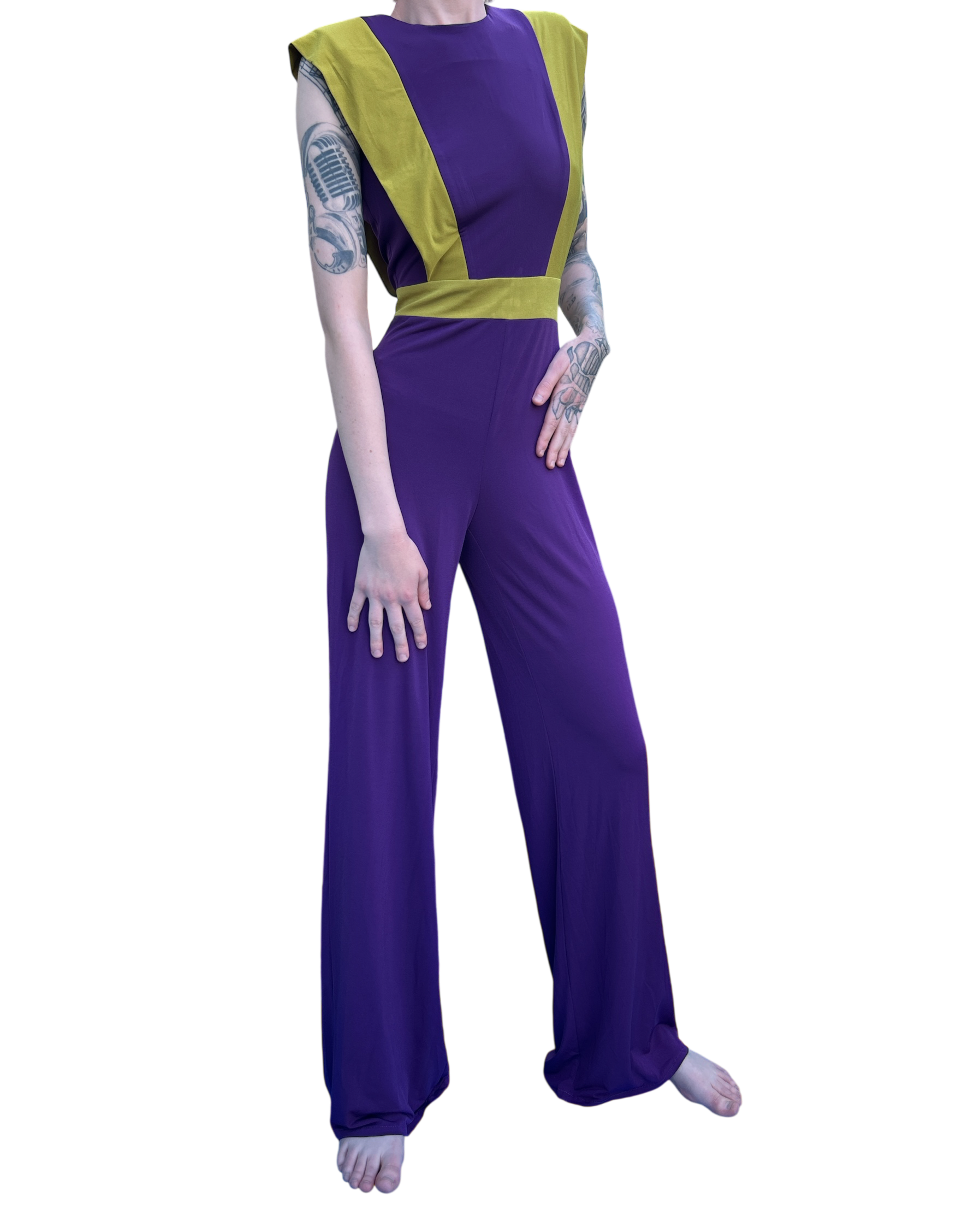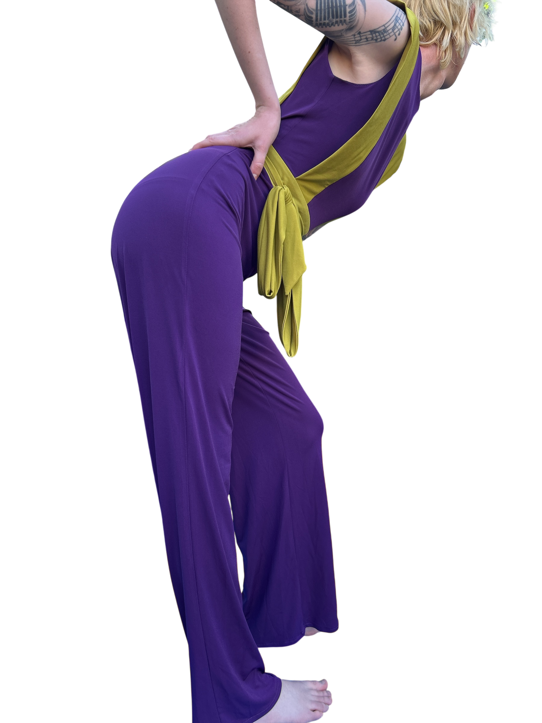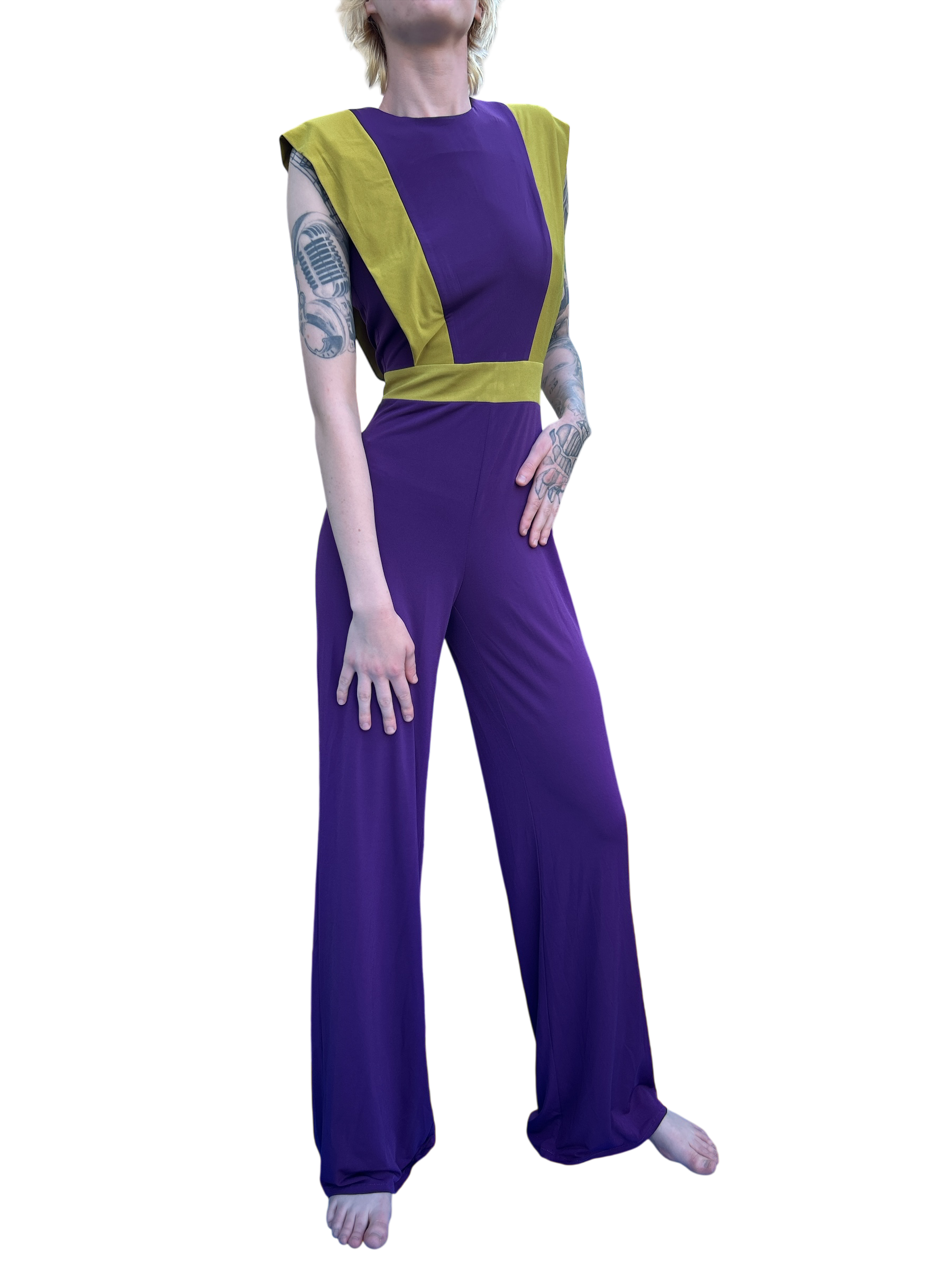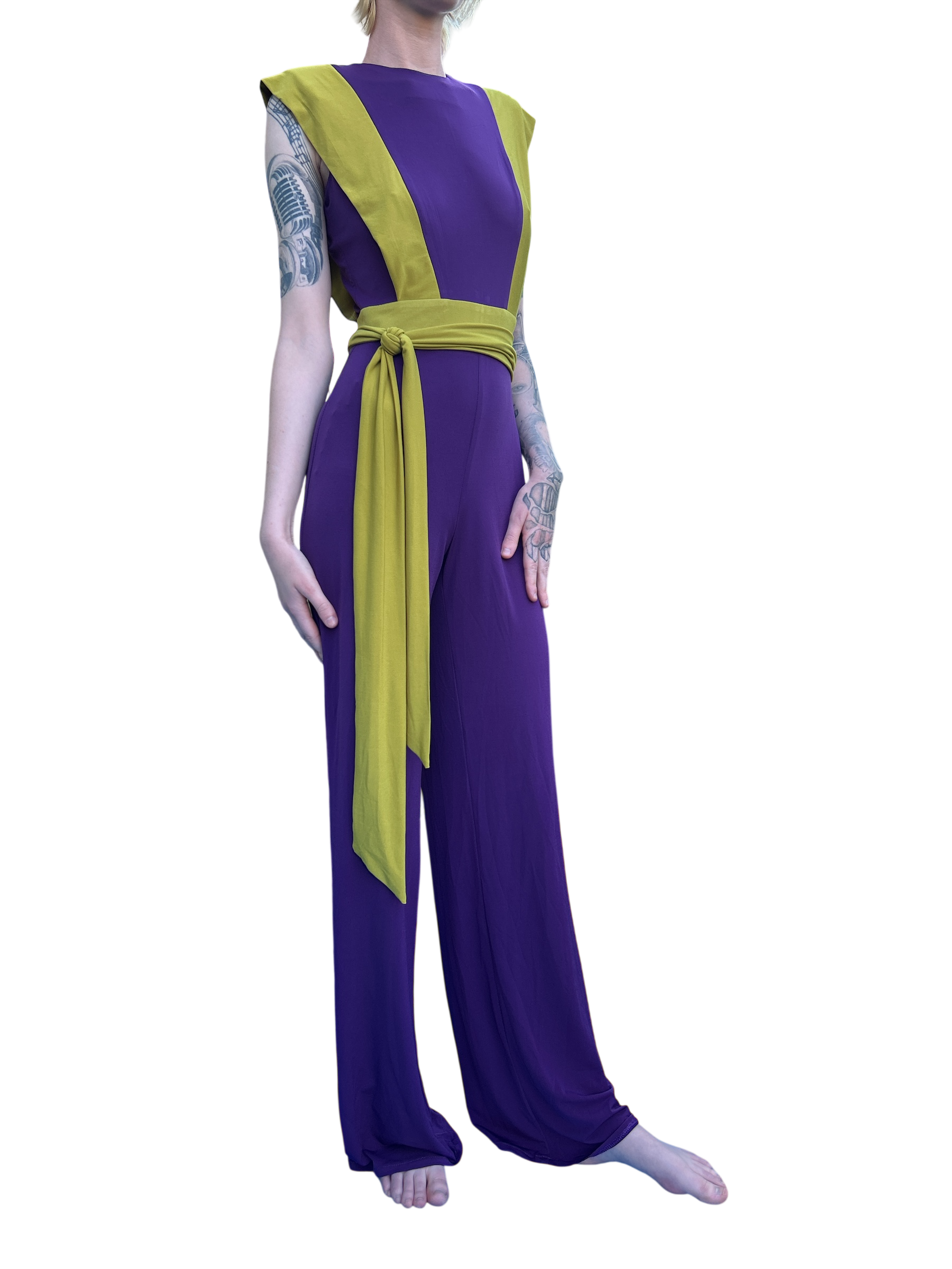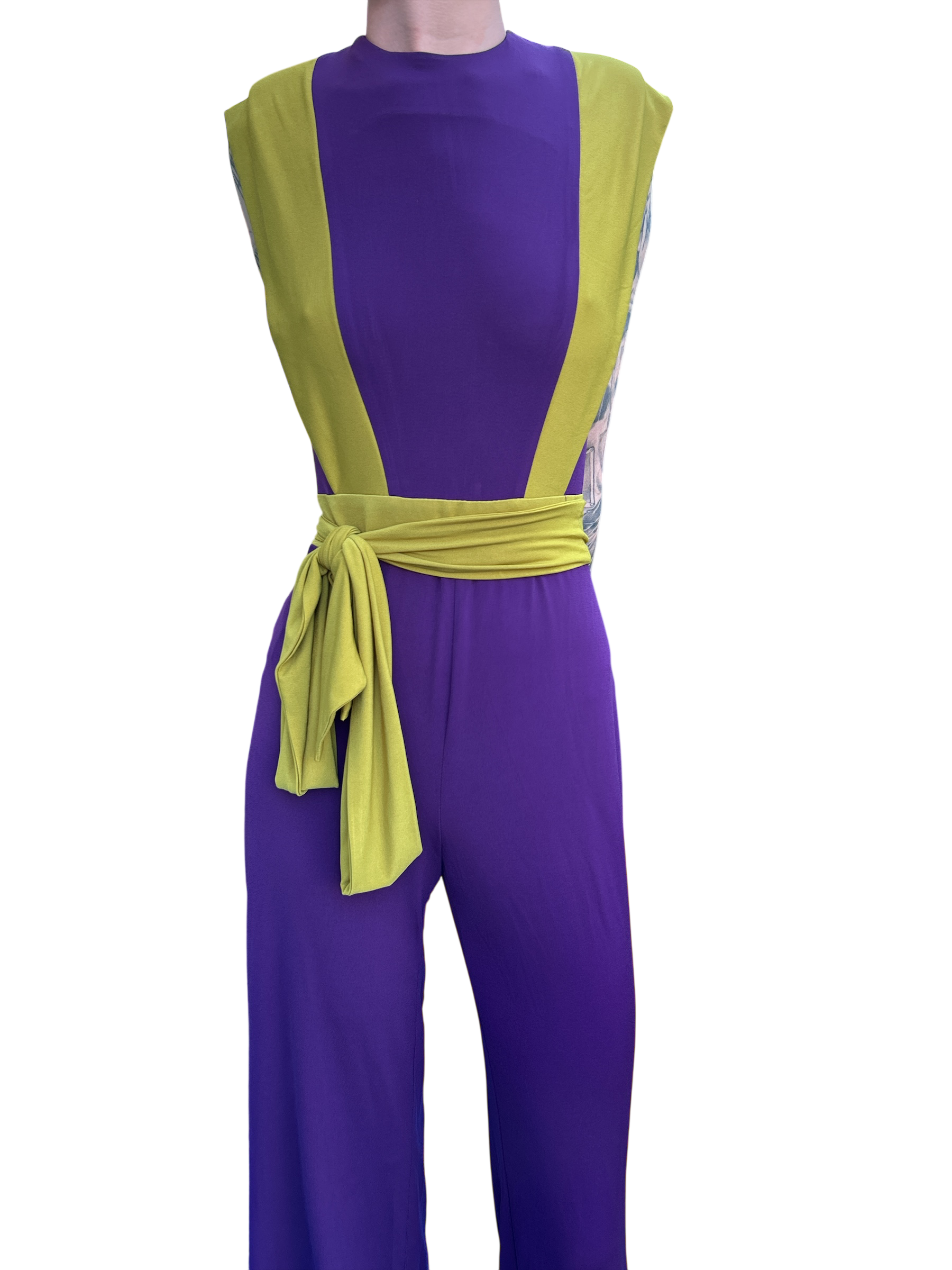 Stand out and feel spectacular in this stunning pant-suit in Violet with Lime