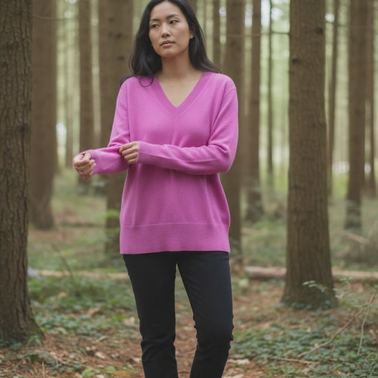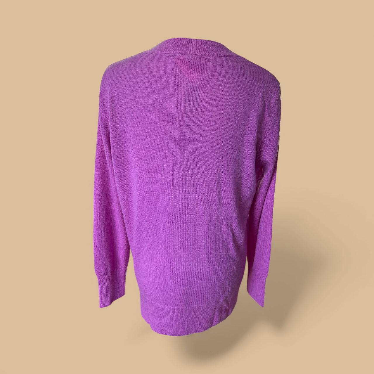 This women's purple V-neck jumper in size large is a luxurious and stylish addition to any wardrobe.