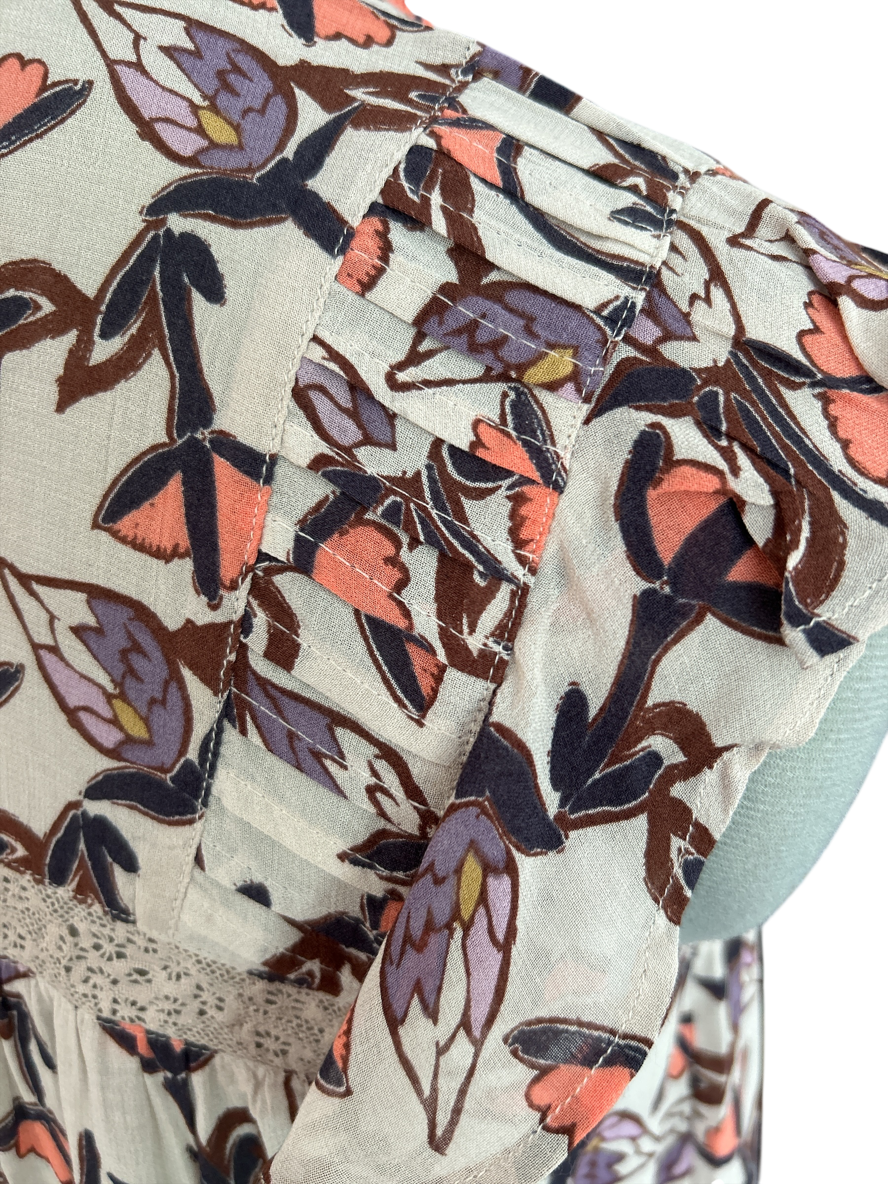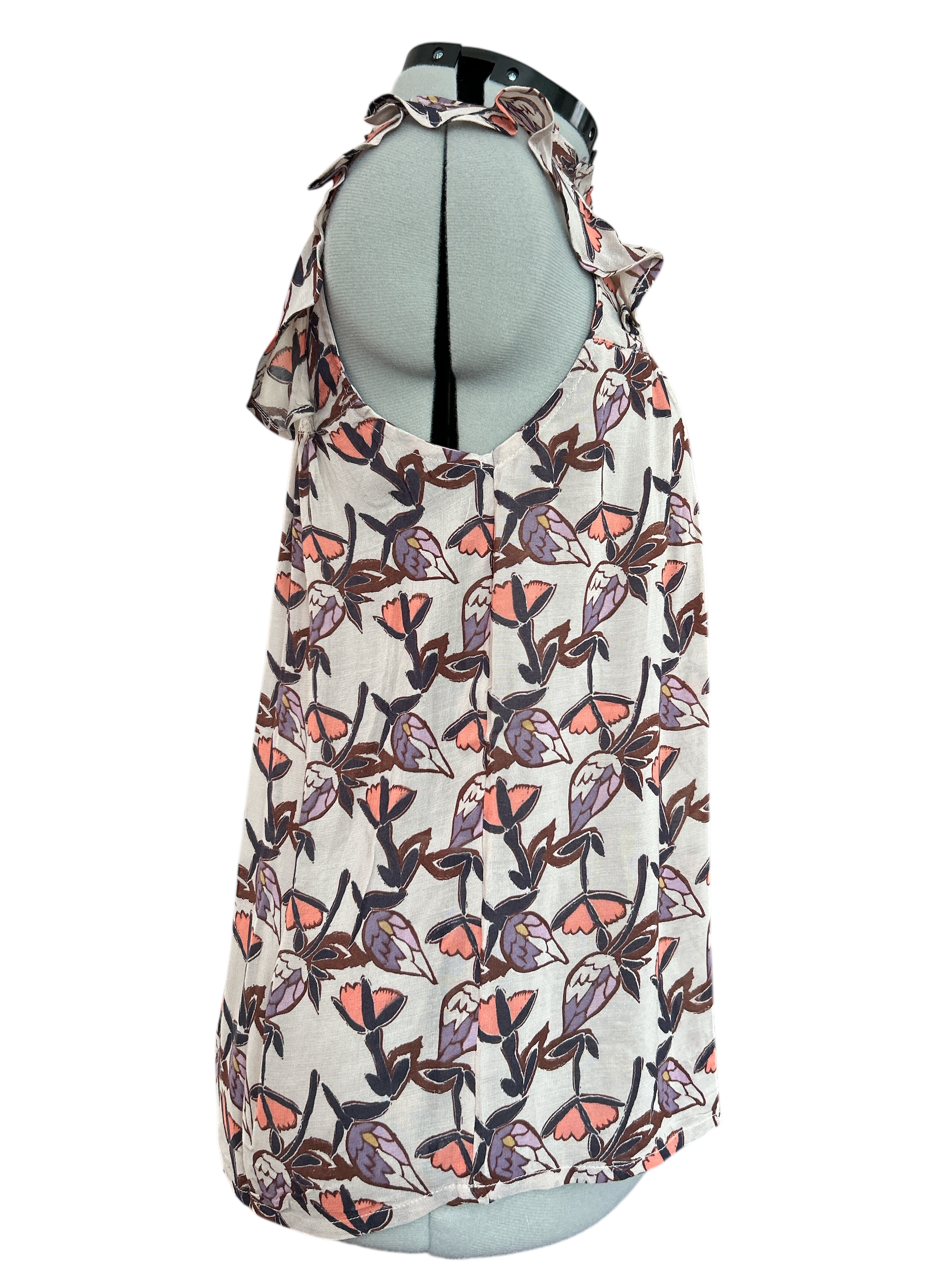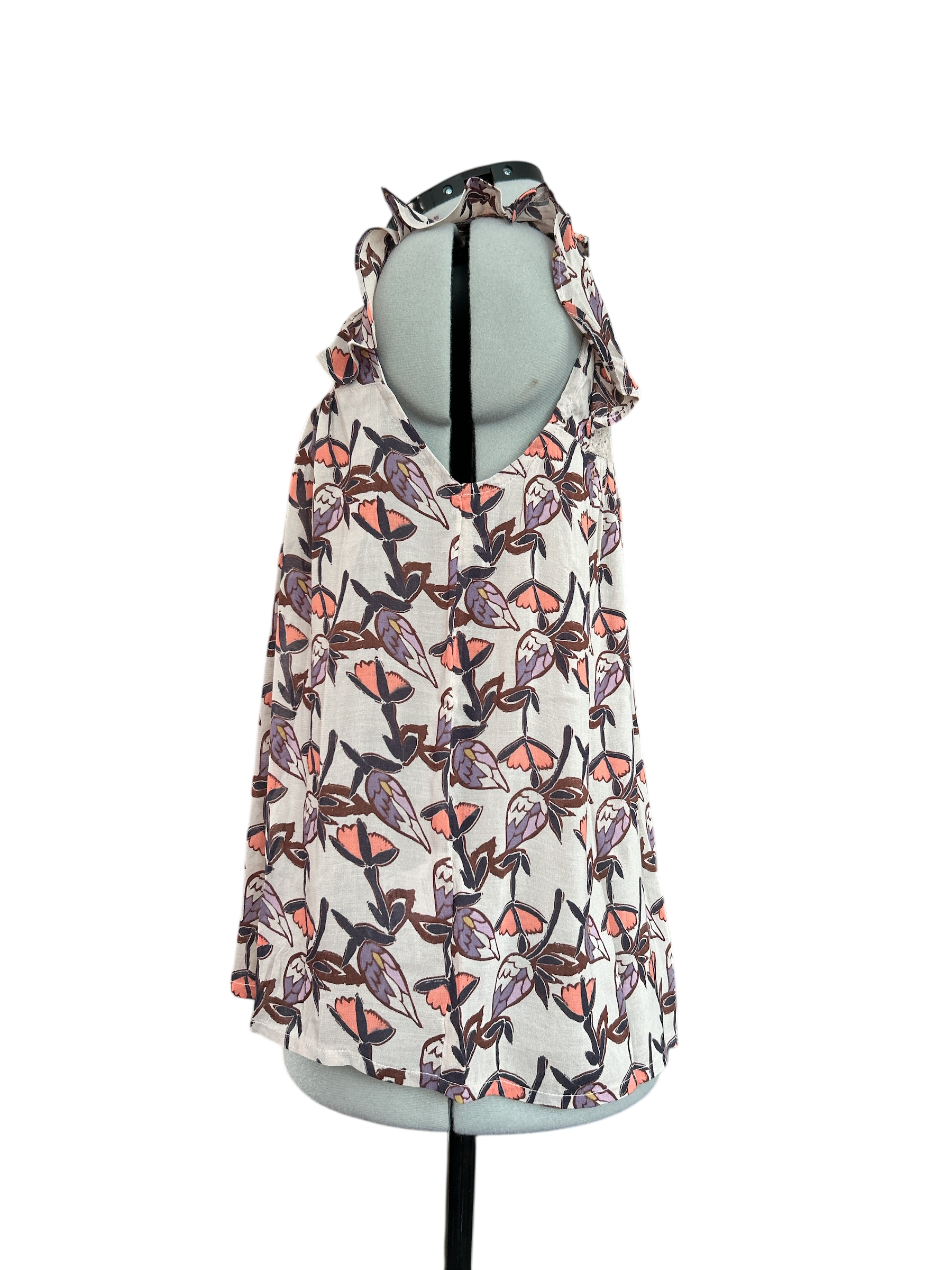 is a new, tagged item with a floral pattern in beige, orange, and purple colours.